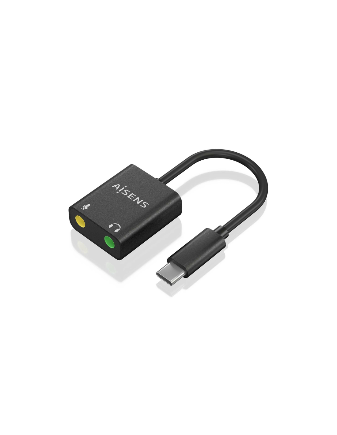 AISENS Conversor USB-C a Audio 48KHz, USB-C/M-2xJack 3.5/H, Negro, 10 cm. Conector 1: USB-C, Conector 2: 2x 3.5 mm, Longitud de cable: 0,1 m. Color del producto: Negro