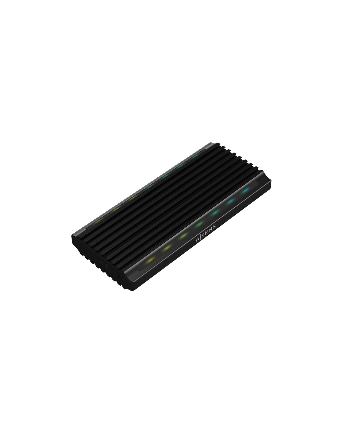 AISENS Caja Externa M.2 RGB Gaming ASM2-RGB012B SATA/NVMe A USB3.1 Gen2, Negra. Tipo de producto: Caja externa para unidad de estado sólido (SSD). Número de unidades de almacenamiento compatibles: 1, Tamaño de la unidad de almacenamiento: M.2, Interfaces de disco de almacenamiento soportados: SATA, Capacidad máxima de almacenaje: 2 TB. Velocidad de transferencia de datos: 10 Gbit/s. Color del producto: Negro. Conector USB: USB Tipo C