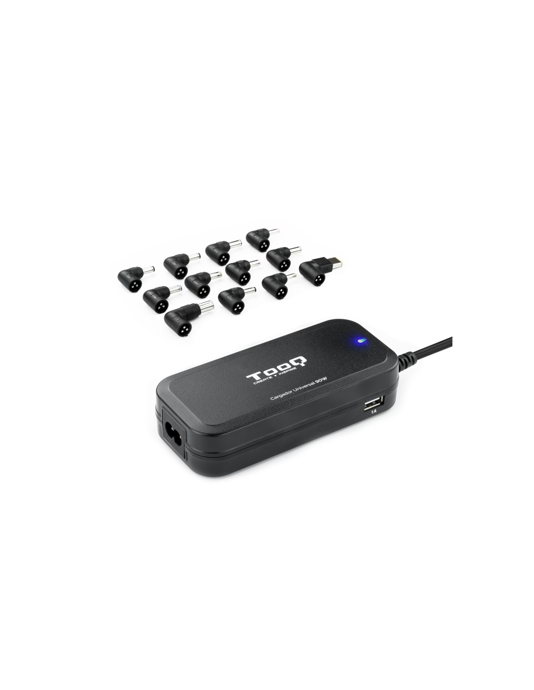 TooQ TQLC-90BS02AT. Utilizar con: Portátil, Tipo de fuente de alimentación: Interior, Voltaje de entrada: 100 - 240 V. Corriente de salida USB: 1 A, Voltaje de salida USB: 5 V, Tiempo medio entre fallos: 50000 h. Color del producto: Negro. Cantidad por paquete: 1 pieza(s),Tipo de embalaje: Ampolla