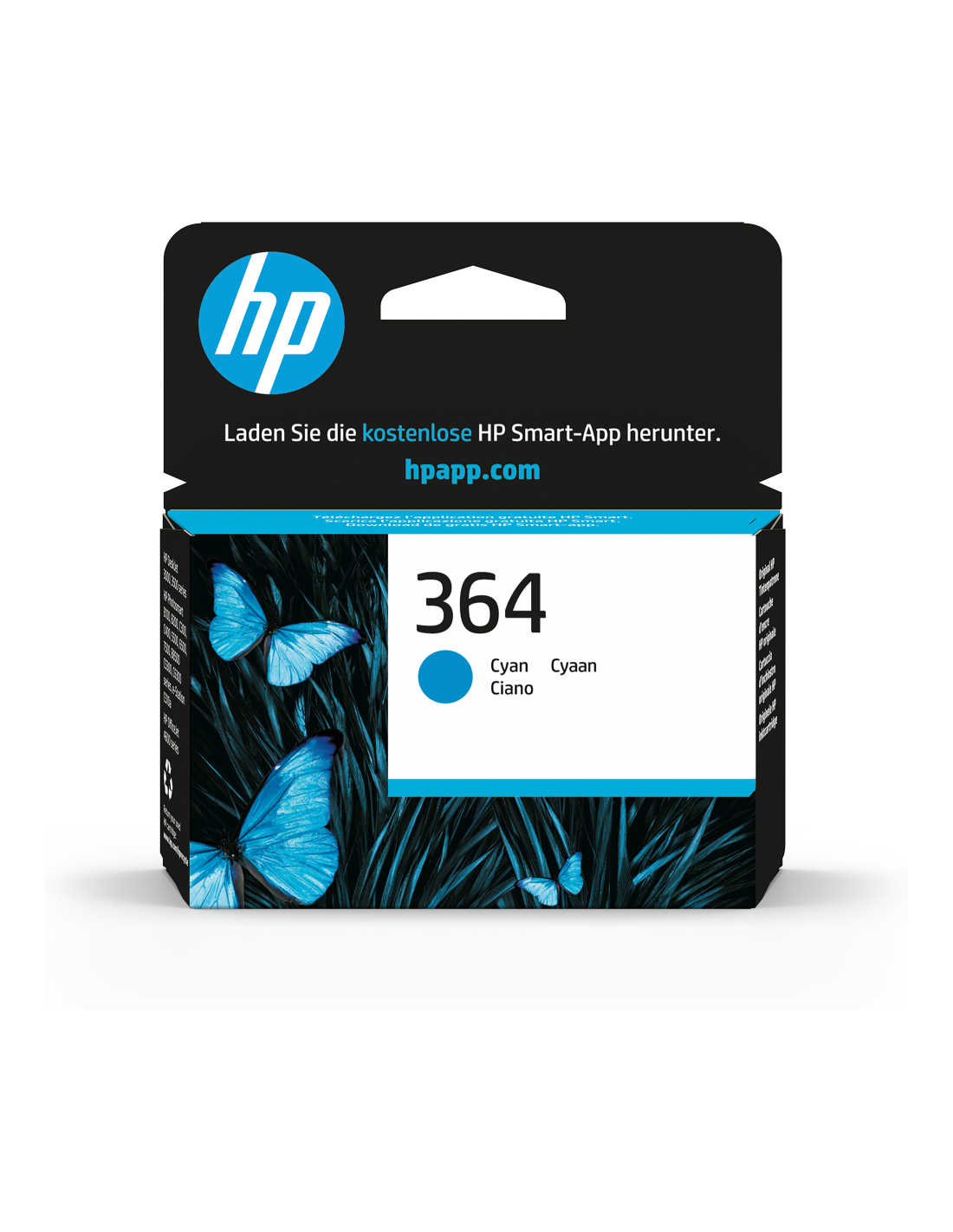 HP Cartucho de tinta original 364 cian. Tipo de cartucho de tinta: Rendimiento estándar, Tipo de tinta de color: Tinta a base de colorante, Rendimiento de impresión de página con tinta de color: 300 páginas, Cantidad por paquete: 1 pieza(s)