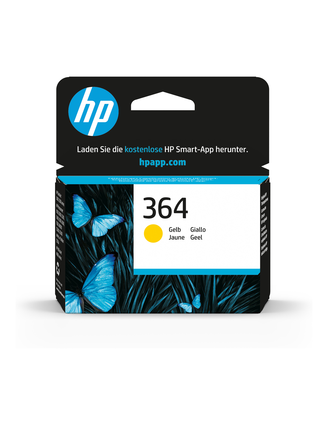 HP Cartucho de tinta original 364 amarillo, Rendimiento estándar, Tinta a base de colorante, 300 páginas, 1 pieza(s)