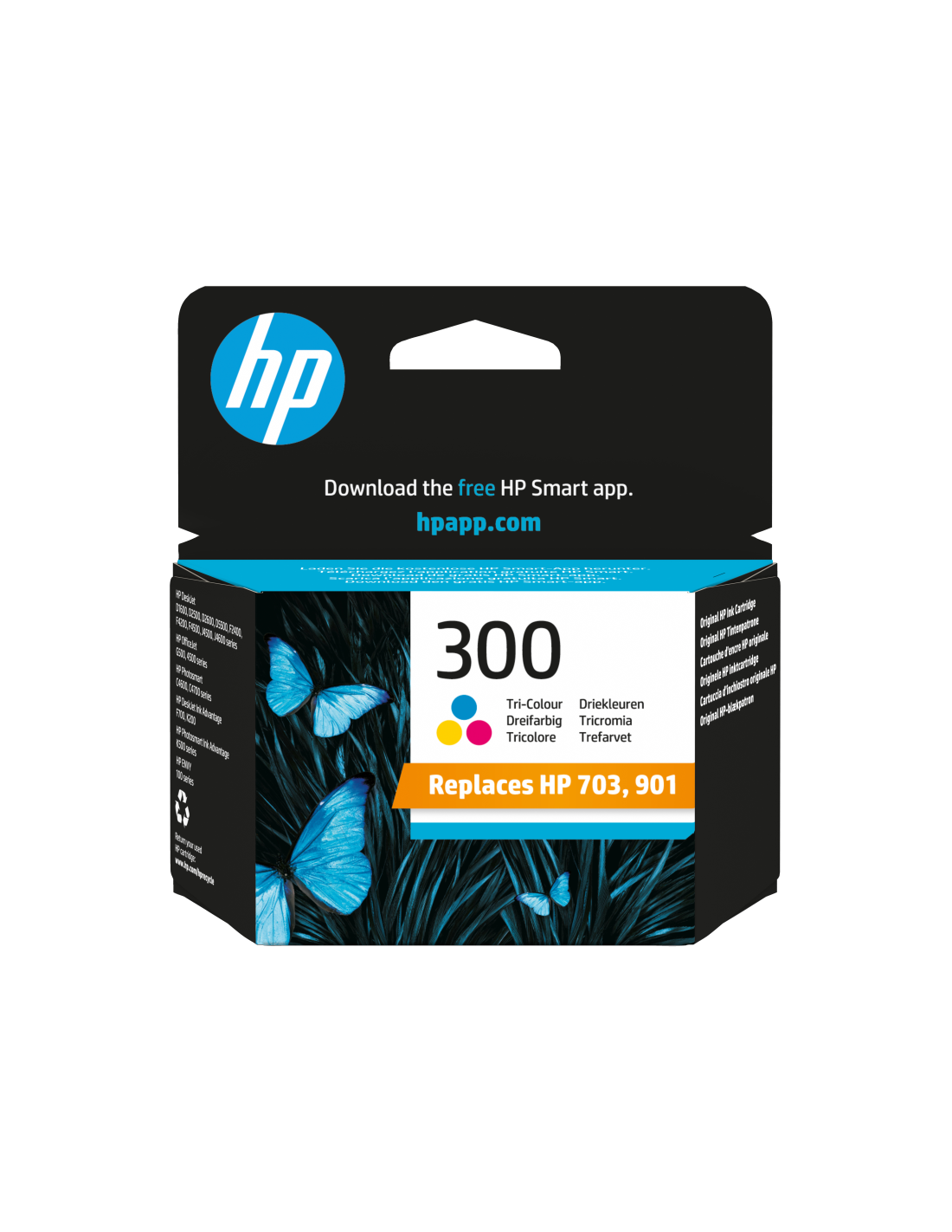 HP Cartucho de tinta original 300 Tri-color. Tipo de cartucho de tinta: Rendimiento estándar, Tipo de tinta de color: Tinta a base de colorante, Rendimiento de impresión de página con tinta de color: 165 páginas, Cantidad por paquete: 1 pieza(s)