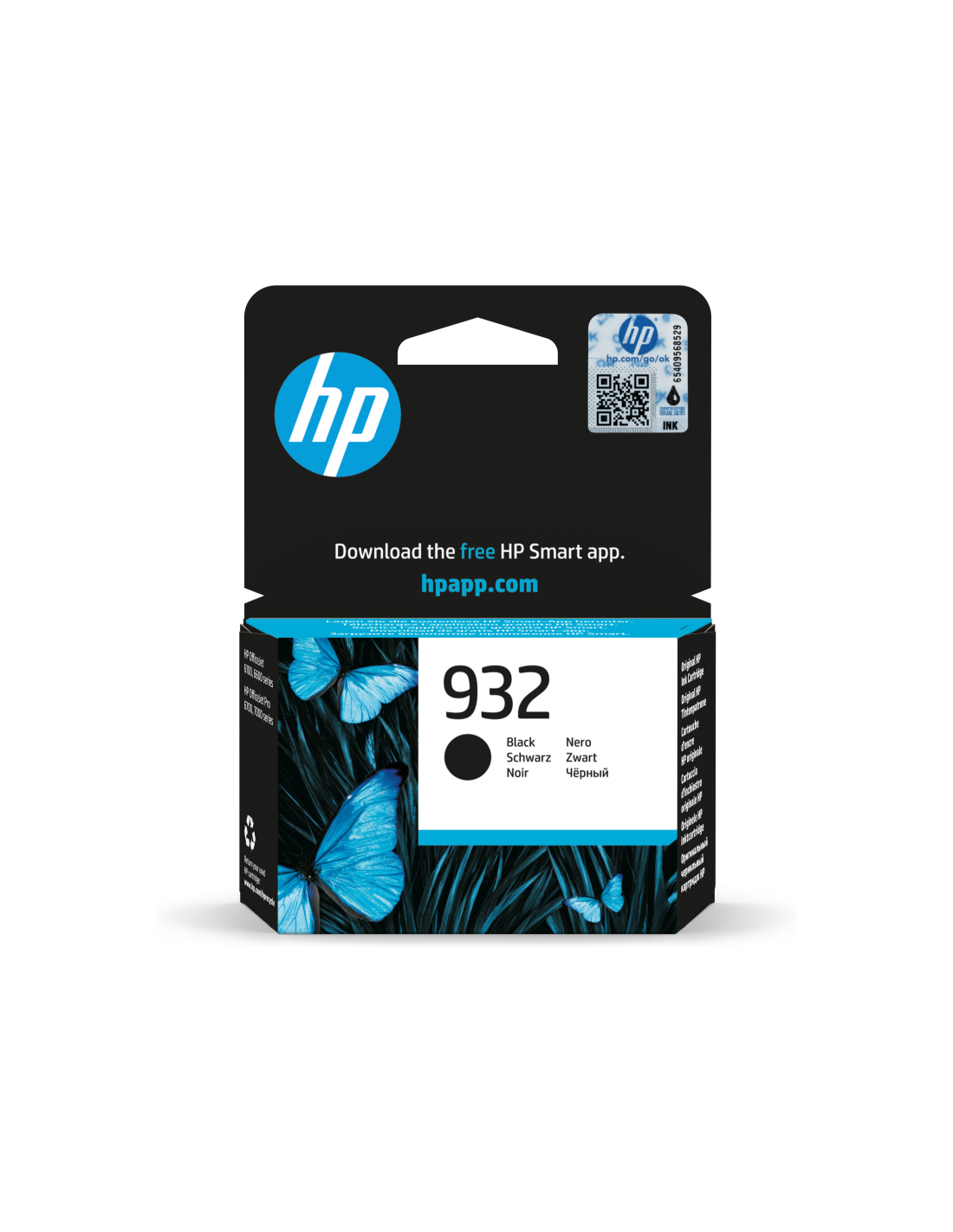 HP Cartucho de tinta original 932 negro, Rendimiento estándar, Tinta a base de pigmentos, 8,5 ml, 400 páginas, 1 pieza(s)
