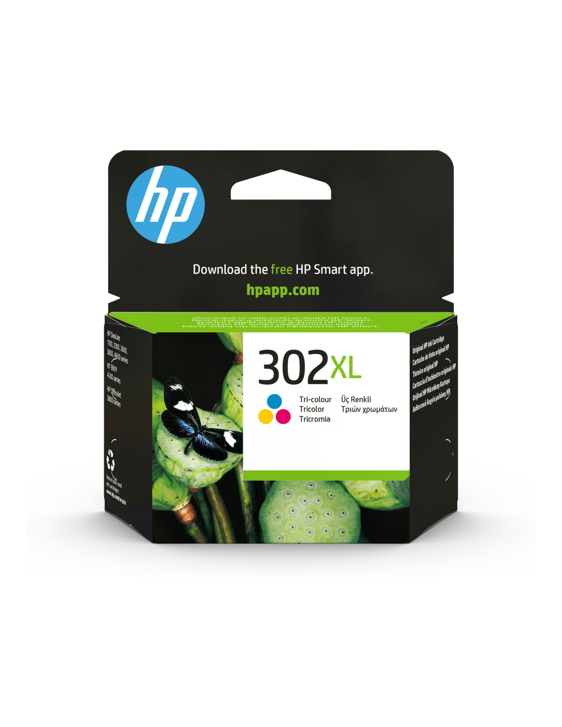 HP Cartucho de tinta original 302XL de alta capacidad tricolor. Tipo de cartucho de tinta: Alto rendimiento (XL),Tipo de tinta de color: Tinta a base de colorante, Rendimiento de impresión de página con tinta de color: 330 páginas, Volumen de tinta de color: 8 ml, Cantidad por paquete: 1 pieza(s)