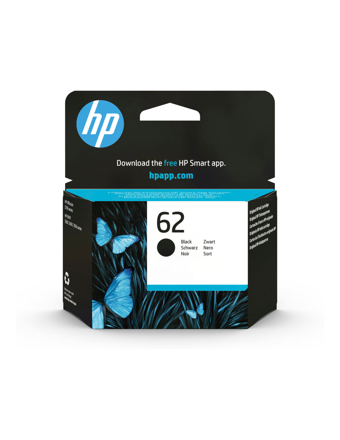 HP Cartucho de tinta original 62 negro. Tipo de cartucho de tinta: Rendimiento estándar, Tipo de tinta negra: Tinta a base de pigmentos, Volumen de tinta negra: 4 ml, Cantidad por paquete: 1 pieza(s),Rendimiento de impresión de página con tinta negra: 200 páginas