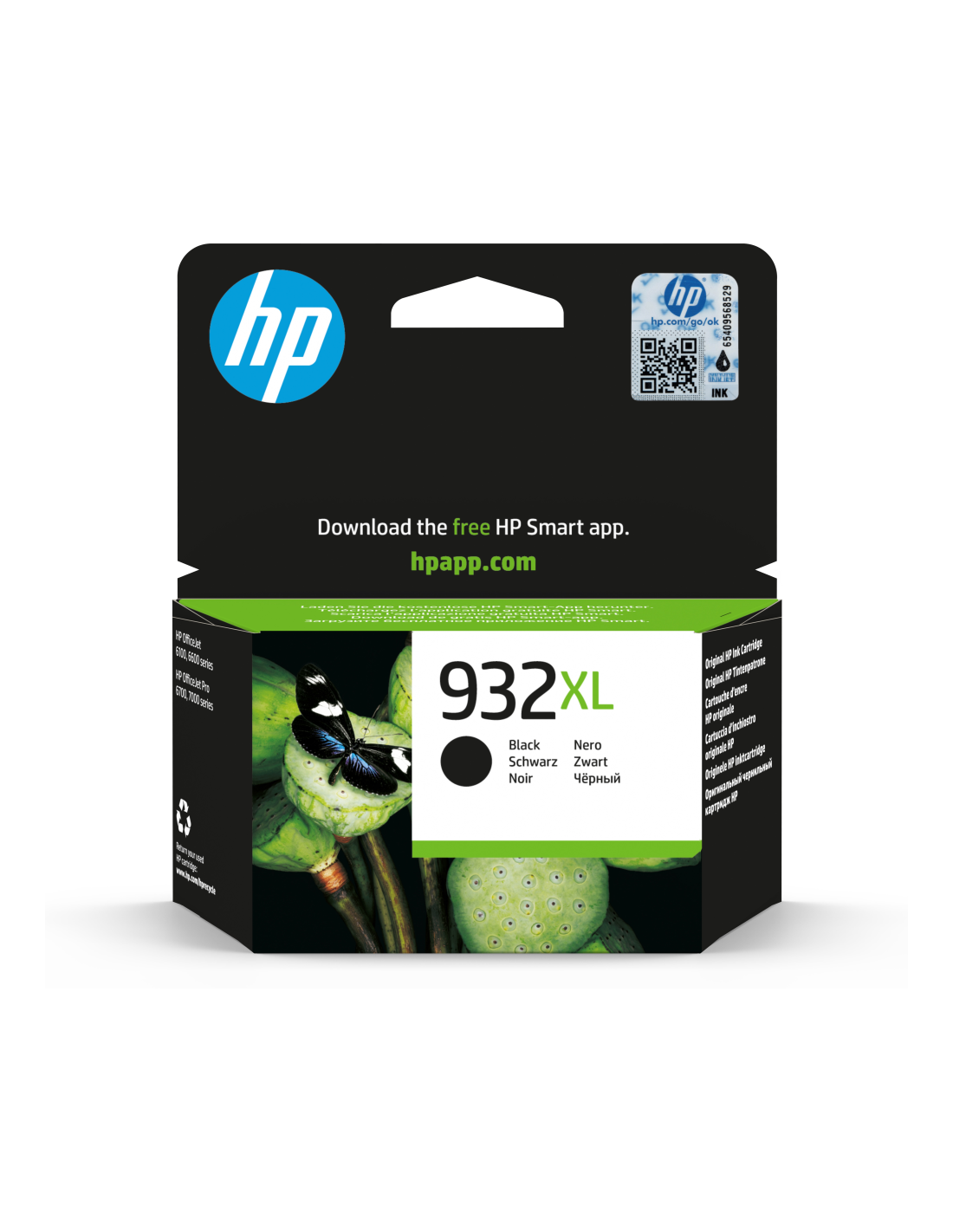 HP Cartucho de tinta original 932XL de alta capacidad negro. Tipo de cartucho de tinta: Alto rendimiento (XL),Tipo de tinta negra: Tinta a base de pigmentos, Volumen de tinta negra: 22,5 ml, Cantidad por paquete: 1 pieza(s),Rendimiento de impresión de página con tinta negra: 1000 páginas