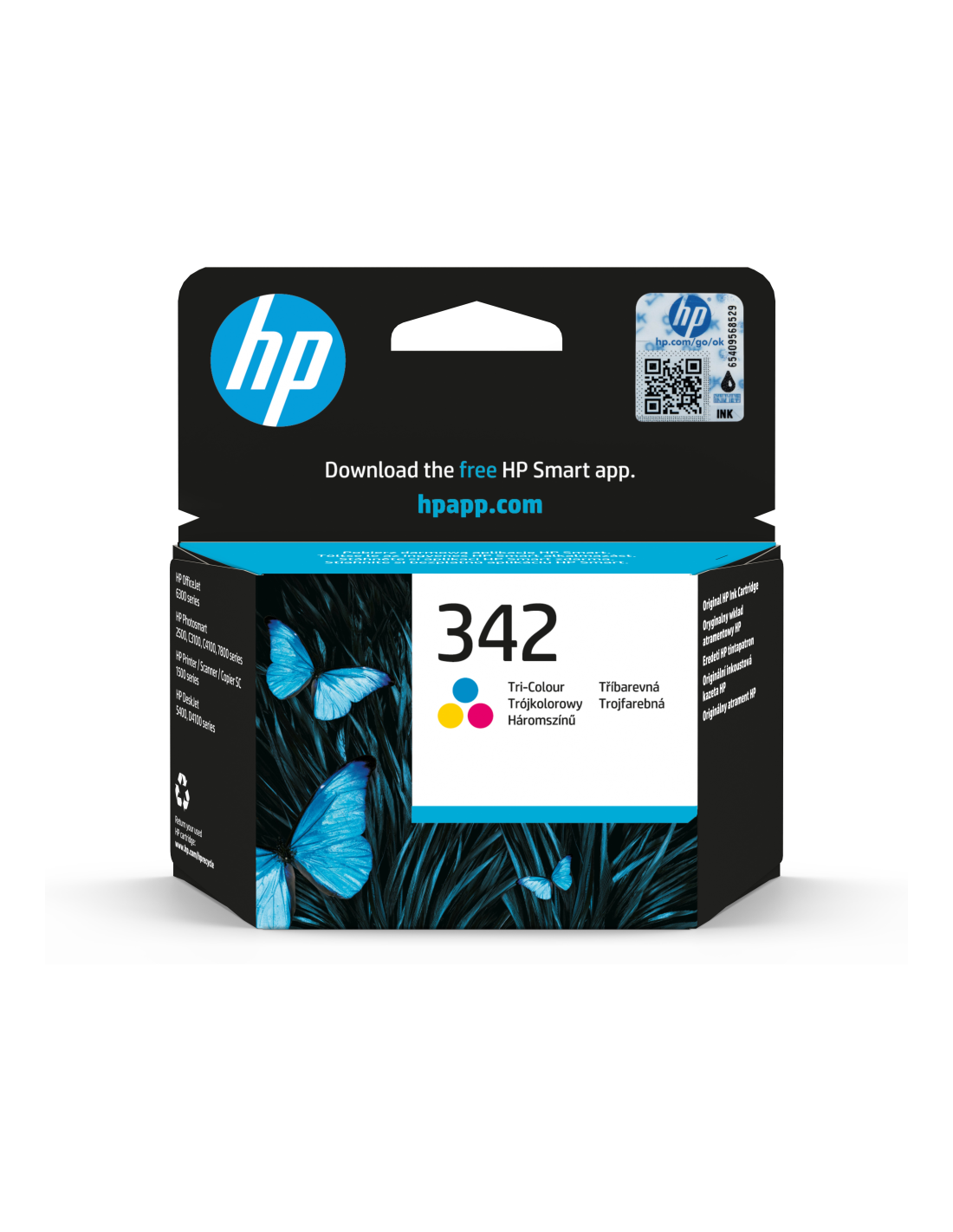 HP Cartucho de tinta original 342 Tri-color, Rendimiento estándar, Tinta a base de colorante, 220 páginas, 1 pieza(s)