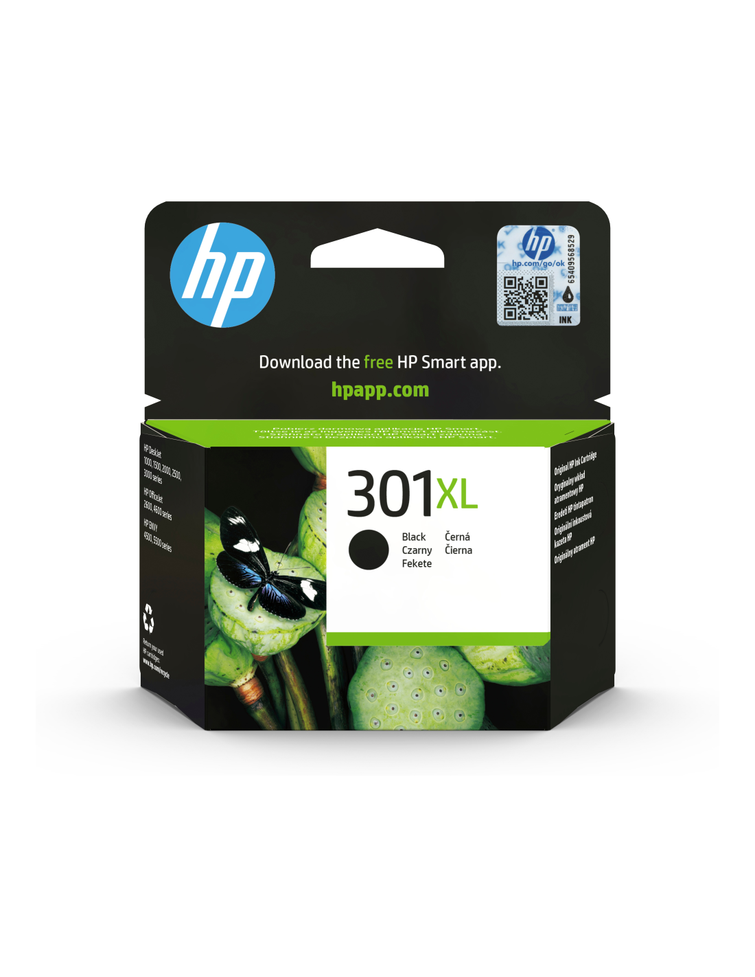 HP Cartucho de tinta original 301XL de alta capacidad negro. Tipo de cartucho de tinta: Alto rendimiento (XL),Tipo de tinta negra: Tinta a base de pigmentos, Volumen de tinta negra: 8 ml, Cantidad por paquete: 1 pieza(s),Rendimiento de impresión de página con tinta negra: 480 páginas