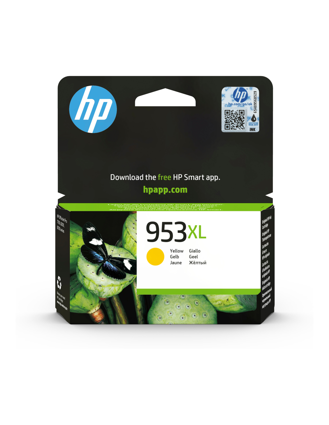 HP Cartucho de tinta Original 953XL de alto rendimiento amarillo. Tipo de cartucho de tinta: Alto rendimiento (XL),Tipo de tinta de color: Tinta a base de pigmentos, Rendimiento de impresión de página con tinta de color: 1600 páginas, Volumen de tinta de color: 20 ml, Cantidad por paquete: 1 pieza(s)