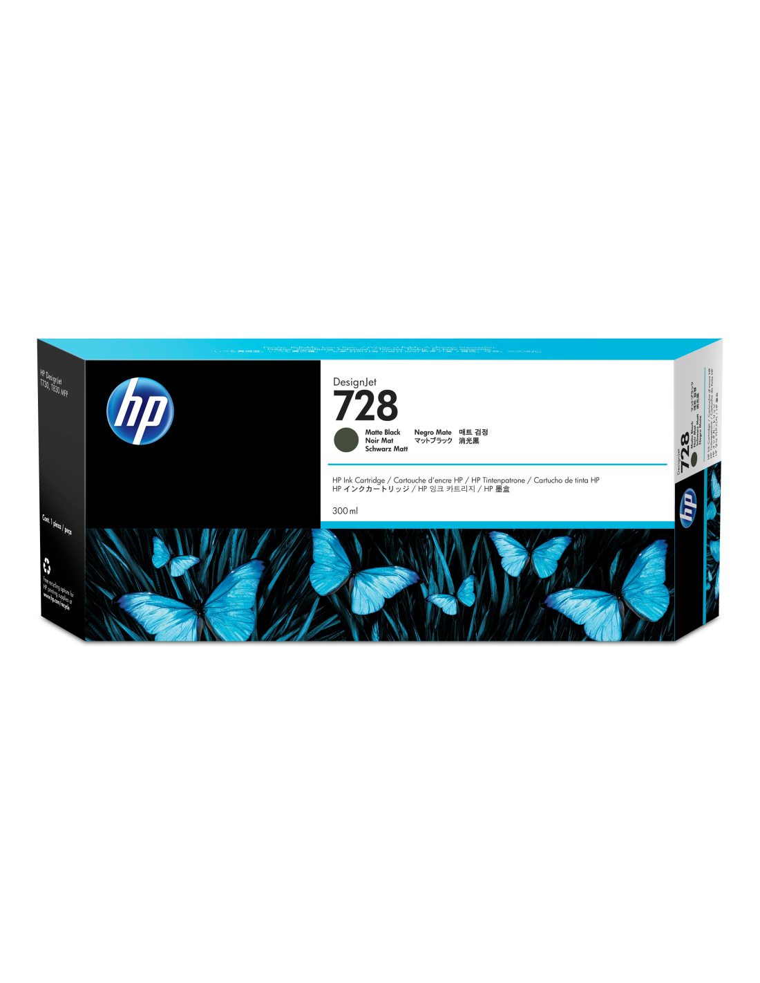 HP Cartucho de tinta DesignJet 728 negro mate de 300 ml, Tinta a base de pigmentos, Tinta a base de pigmentos, 300 ml, 1 pieza(s)