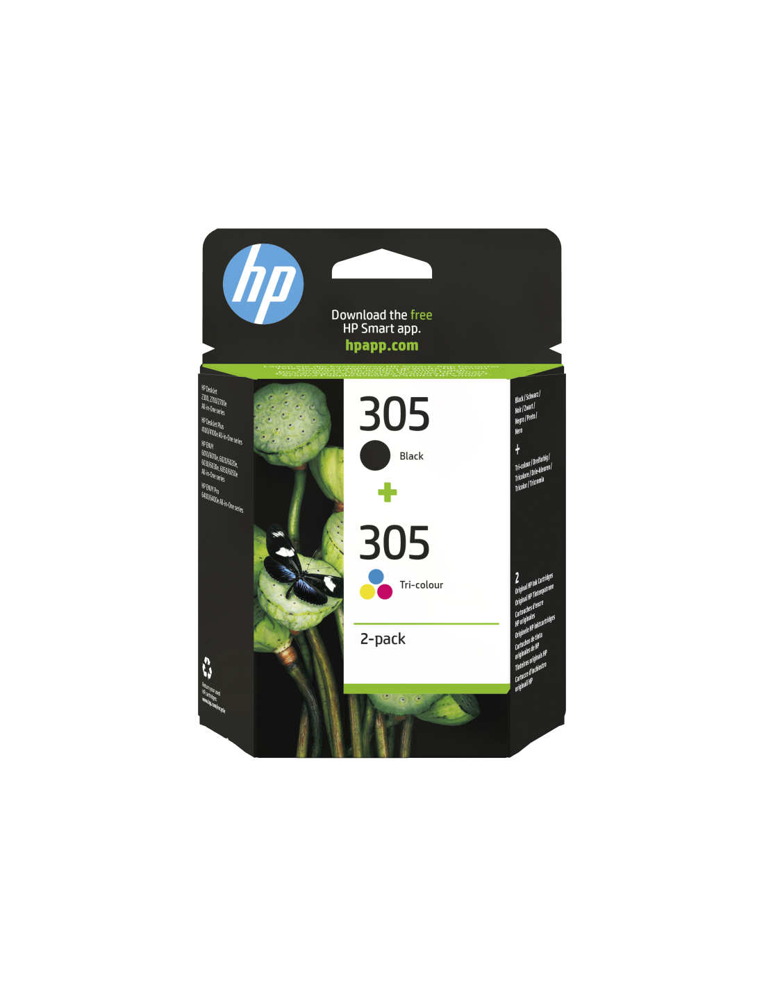 HP Paquete de 2 cartuchos de tinta original 305 tricolor / negro, Rendimiento estándar, Tinta a base de colorante, Tinta a base de pigmentos, 120 páginas, 2 pieza(s),Pack de 2
