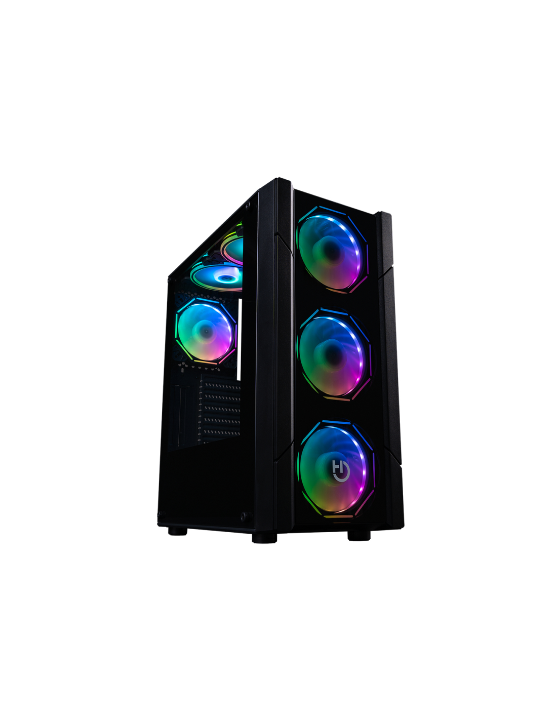 Hiditec V30 ARGB. Tipo: PC, Color del producto: Negro, Formas de factor de tarjeta madre soportadas: ATX, ITX, micro ATX. Ventiladores frontales instalados: 3x 120 mm, Diámetro de ventiladores frontales soportados: 120 mm, Ventiladores traseros instalados: 1x 120 mm. Ancho: 190 mm, Profundidad: 335 mm, Altura: 428 mm. Grosor del panel de vidrio templado: 4 mm