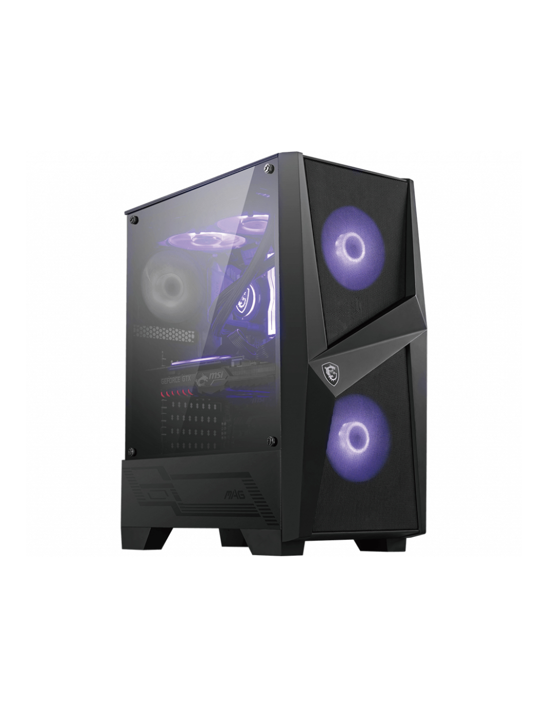 MSI MAG FORGE 100M. Factor de forma: Midi Tower, Tipo: PC, Color del producto: Negro, Transparente. Ubicación de fuente de alimentación: Fondo, Factores de forma de la fuente de alimentación compatibles: ATX. Ventiladores frontales instalados: 2x 120 mm, Diámetro de ventiladores frontales soportados: 120,140 mm, Ventiladores traseros instalados: 1x 120 mm. Tamaños de disco duro soportados: 2.5,3.5". Ancho: 210 mm, Profundidad: 421 mm, Altura: 499 mm