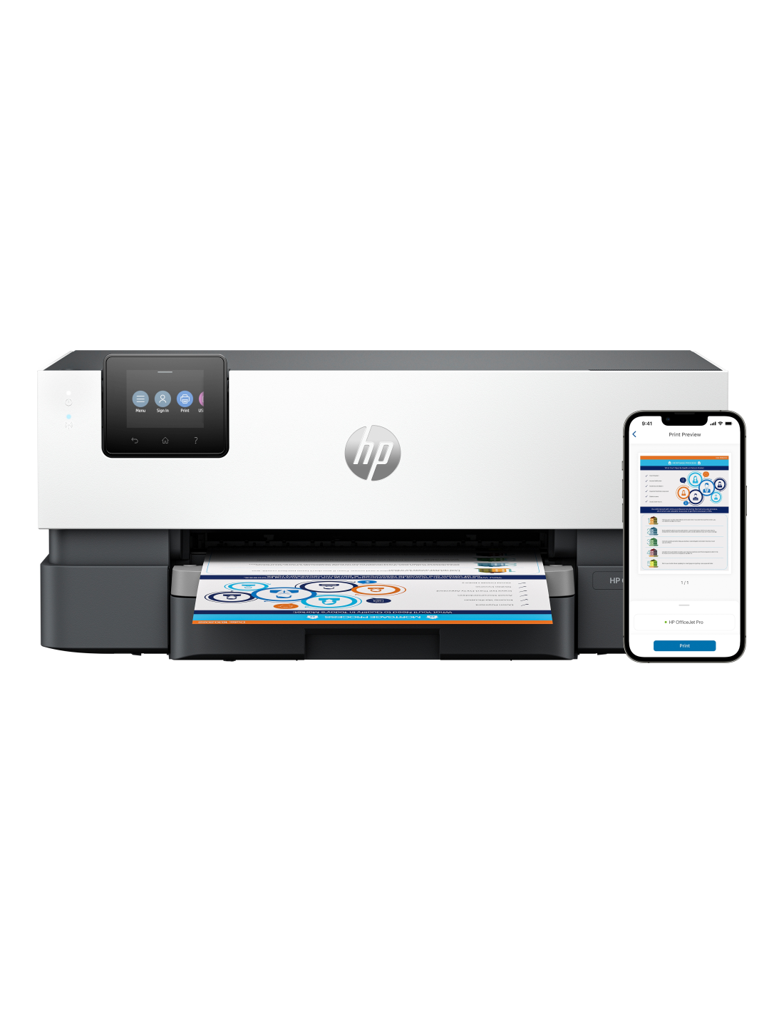 HP OfficeJet Pro Impresora 9110b, Color, Impresora para Home y Home Office, Estampado, Conexión inalámbrica; Impresión a doble cara; Impresión desde móvil o tablet; Pantalla táctil; Puerto de unidad de memoria flash USB frontal, Inyección de tinta térmica, Impresión a color, 4800 x 1200 DPI, A4, Impresión directa, Gris