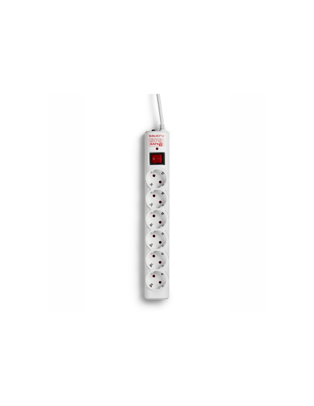 Salicru SPS SAFE 6. Índice de aumento de energía: 238 J, Cantidad de salidas AC: 6 salidas AC, Tipo de salida AC: Tipo F. Color del producto: Blanco, Tiempo de respuesta: 1 ms. Longitud de cable: 1,5 m. Certificación: IEC-60884-1; EN-61643-11; EN-61643-21, ISO 9001, ISO 14001. Número de productos incluidos: 1 pieza(s)