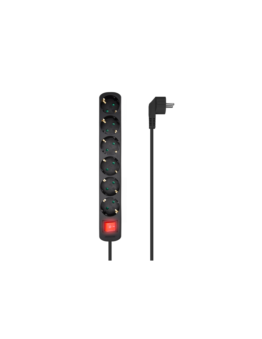 AISENS Base Multiple 6 Tomas Con Interruptor Con Cable 3x1.5mm2, Negro, 1.4m. Longitud de cable: 1,4 m, Colocación soportada: Interior, Tipo de salida AC: Tipo F. Cantidad de salidas AC: 6 salidas AC. Voltaje de entrada AC: 250 V, Potencia máx. de entrada: 3500 W, Máxima corriente: 16 A. Ancho: 53 mm, Altura: 40 mm. Número de productos incluidos: 1 pieza(s),Ancho del paquete: 110 mm, Profundidad del paquete: 45 mm