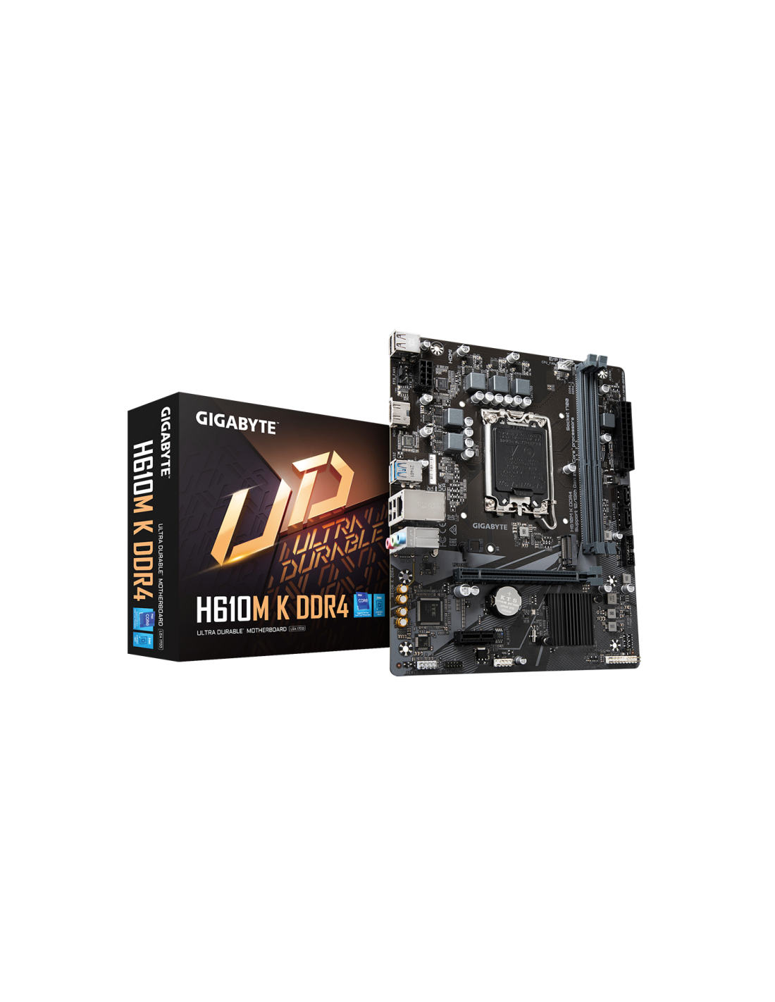 Gigabyte H610M K DDR4 1.0, Intel, LGA 1700, Intel® Celeron®, Intel® Core™ i3, Intel® Core™ i7, Intel® Core™ i9, Intel® Pentium® Gold, DDR4-SDRAM, 64 GB, DIMM