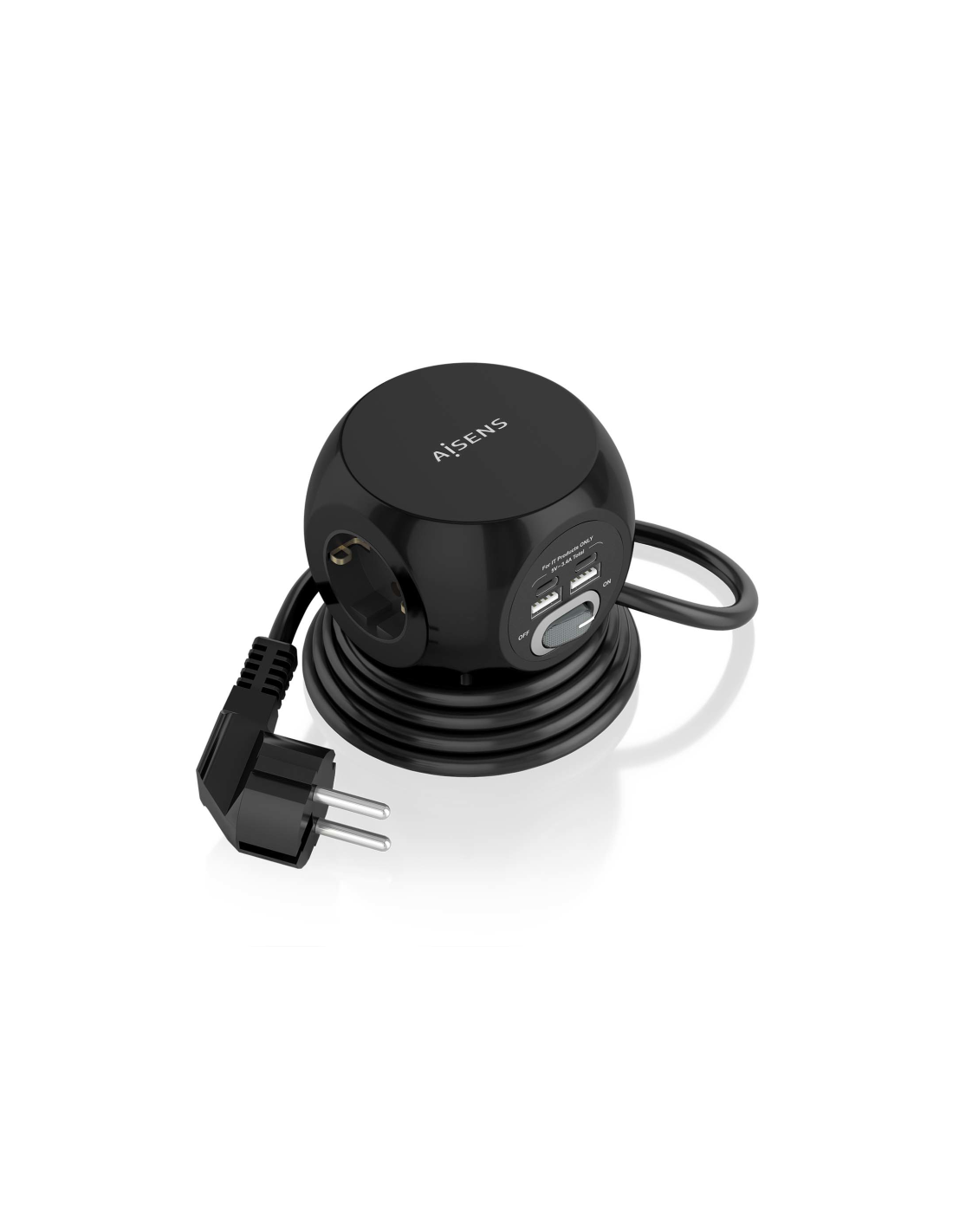 AISENS Regleta de Enchufes Sobremesa Multifuncion con 3 Tomas + 2xUSB-C, 2xUSB-A, 1.4M, Negro. Longitud de cable: 1,4 m, Colocación soportada: Interior, Tipo de salida AC: Tipo F. Cantidad de salidas AC: 3 salidas AC. Voltaje de entrada AC: 230 V, Frecuencia de entrada AC: 50 Hz, Potencia máx. de entrada: 3680 W. Ancho: 93 mm, Profundidad: 93 mm, Altura: 73 mm. Contenido del paquete: 1 x Base múltiple multifunción de sobremesa 1 x Manual de usuario multi-idioma