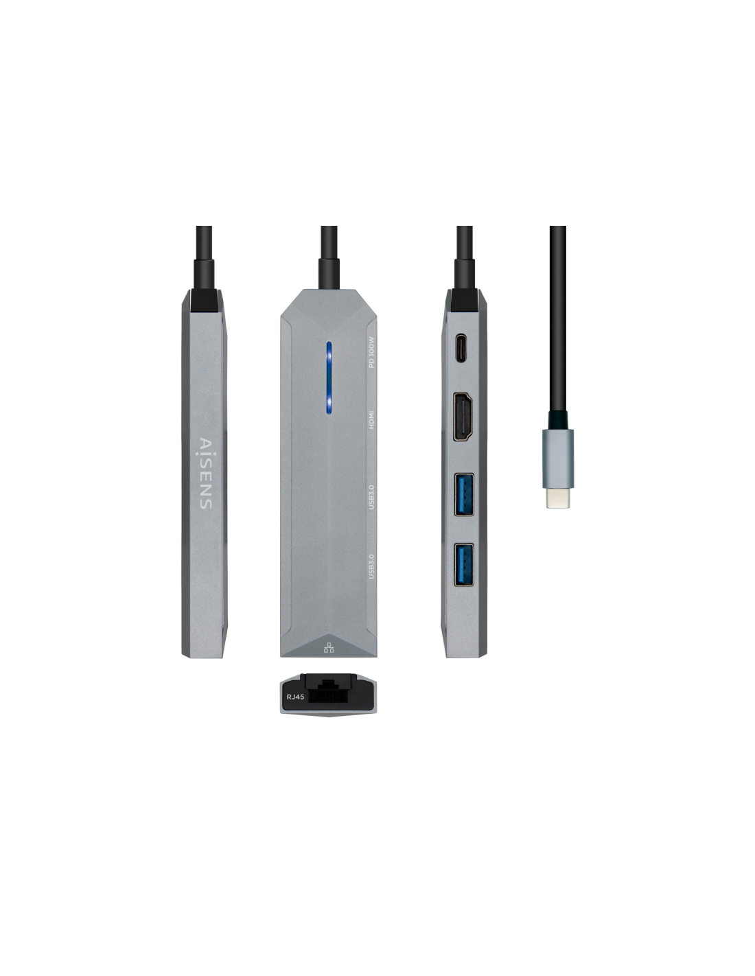 AISENS USB-C DOCK 5 EN 1 USB-C A 1xHDMI 1xRJ45 2xUSB 1xPD GRIS 15CM