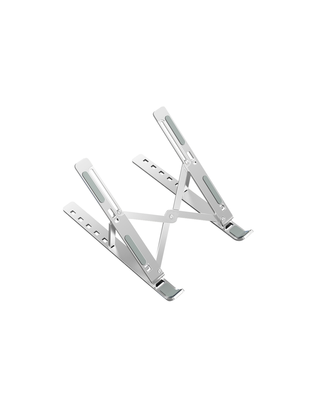 Fabricado en aleación de aluminio de primera calidad de 4 mm totalmente resistente. Puede soportar hasta 5 kg de peso. Dispone de 4 almohadillas de silicona antideslizante en la parte superior e inferior del soporte, y otras 2 alfombrillas en el gancho; mantiene el portátil estable y lo protege de deslizamientos y rasguños.