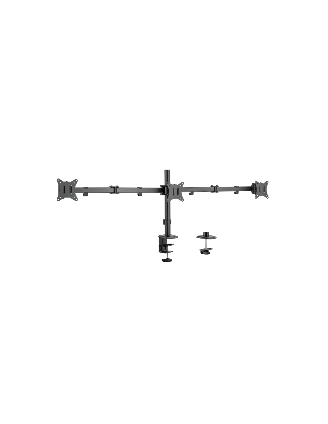 Ewent EW1513. Montaje: Abrazadera/Atornillado, Capacidad máxima de peso: 7 kg, Tamaño máximo de pantalla: 68,6 cm (27"),Compatibilidad con interfaz de montaje (min): 75 x 75 mm, Compatibilidad con interfaz de montaje (max): 100 x 100 mm. Ajustes de altura. Color del producto: Negro