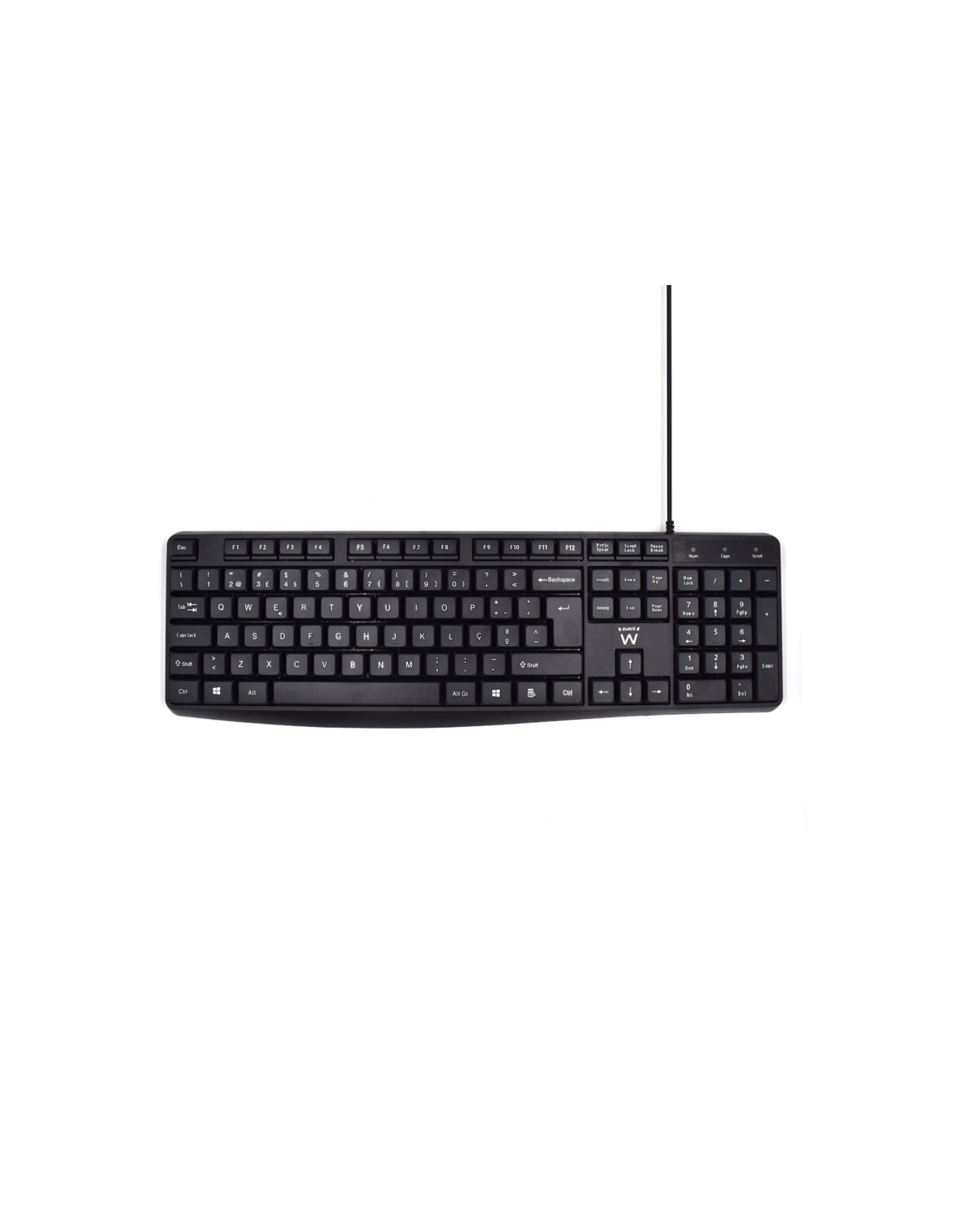 Ewent EW3002. Formato del teclado: Completo (100%). Estilo de teclado: Derecho. Interfaz del dispositivo: USB, Interruptor del teclado: Interruptor de membrana, Diseño de teclado: QWERTY, Teclado, cantidad de teclas: 104. Longitud de cable: 1,35 m. Uso recomendado: Oficina. Color del producto: Negro