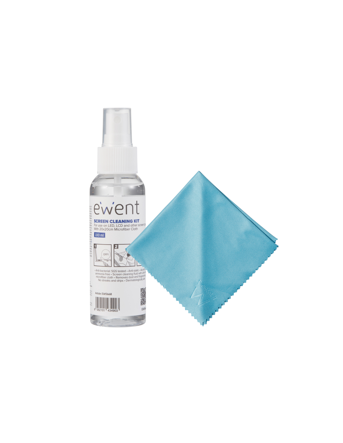 EWENT KIT DE LIMPIEZA DE PANTALLAS 100ML CONPAÑO MICROFIBRA 20X20CM