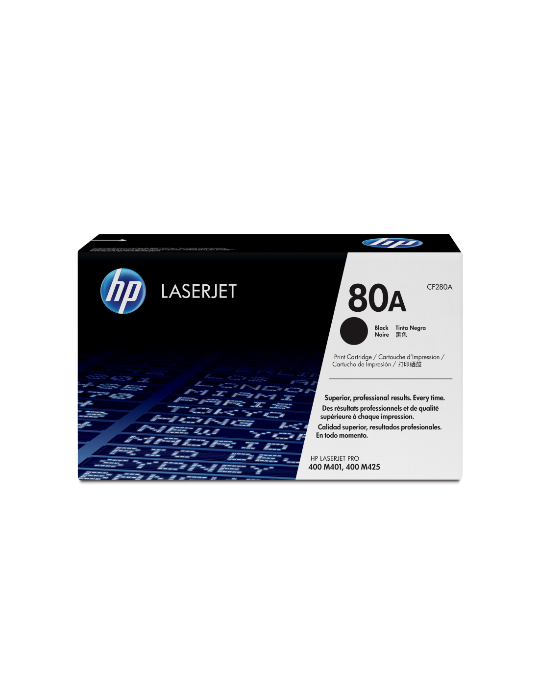 El cartucho de tóner negro HP 80A LaserJet hace que los documentos de la empresa tengan un aspecto profesional con texto negro nítido. Mantenga su productividad al evitar la pérdida de tiempo y el desperdicio de suministros. Estos cartuchos han sido diseñados especialmente para su impresora HP LaserJet o multifunción.
