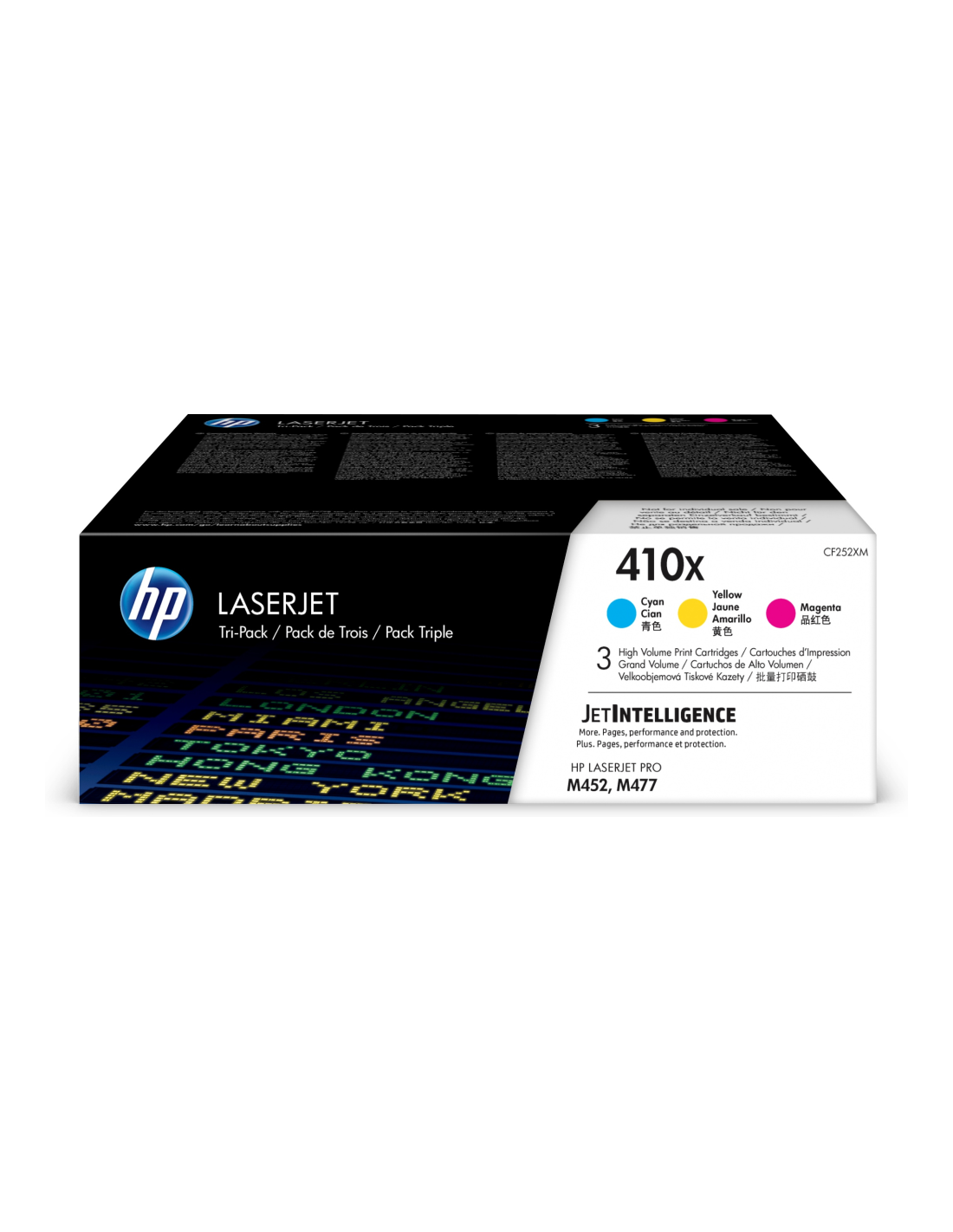HP Paquete de 3 cartuchos de tóner cian/magenta/amarillo Originales LaserJet 410X de alta capacidad. Rendimiento de impresión de tóner de color: 5000 páginas, Colores de impresión: Cian, Magenta, Amarillo, Cantidad por paquete: 3 pieza(s)